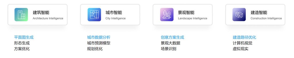 The contents of our concentrated development are mainly divided into the following four types of research: 1) Architectural Intelligence; 2) City Intelligence; 3) Landscape Intelligence; 4) Construction Intelligence.